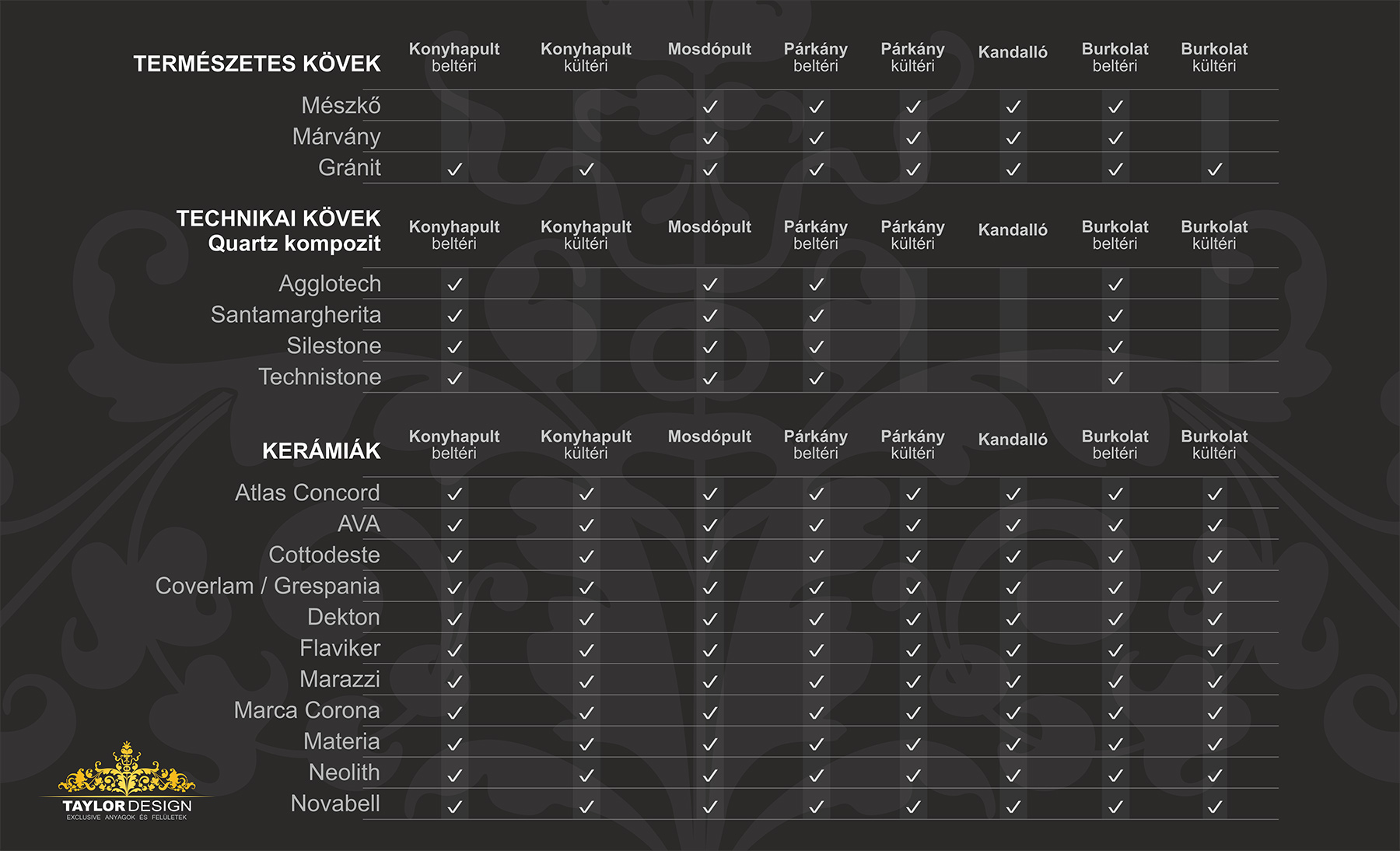 Kíválló választás beltérre és kültérre: konyhai munkapultnak, teljes fürdőszobai felhasználásra, lépcsőnek, padlónak, falburkolatnak (homlokzatnak), párkánynak…